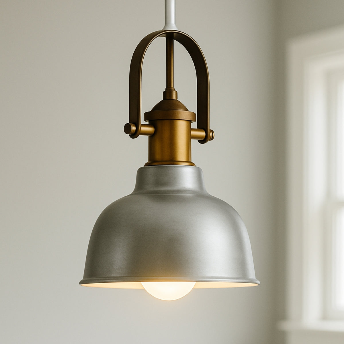 CGC GEORGIE Industrial Metal Pendant Light Silver & White inner with Brass Fitting