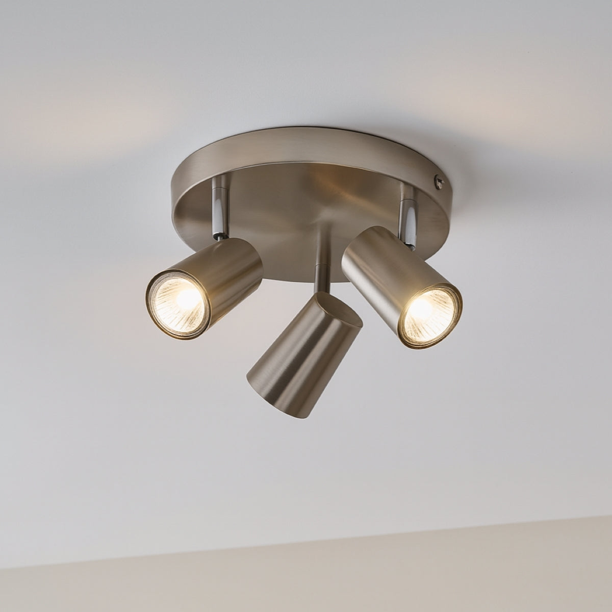 A spotlight plate can be a simple yet incredibly effective way to create a more practical style of lighting inside of the interiors. This sleek modern piece features 3 individual spotlights which each face in a separate direction to ensure that the light is spread as practically as possible. Finished in an incredibly fashionable satin nickel effect, this fixture will give clear and focused light to your home alongside a very stylish image.