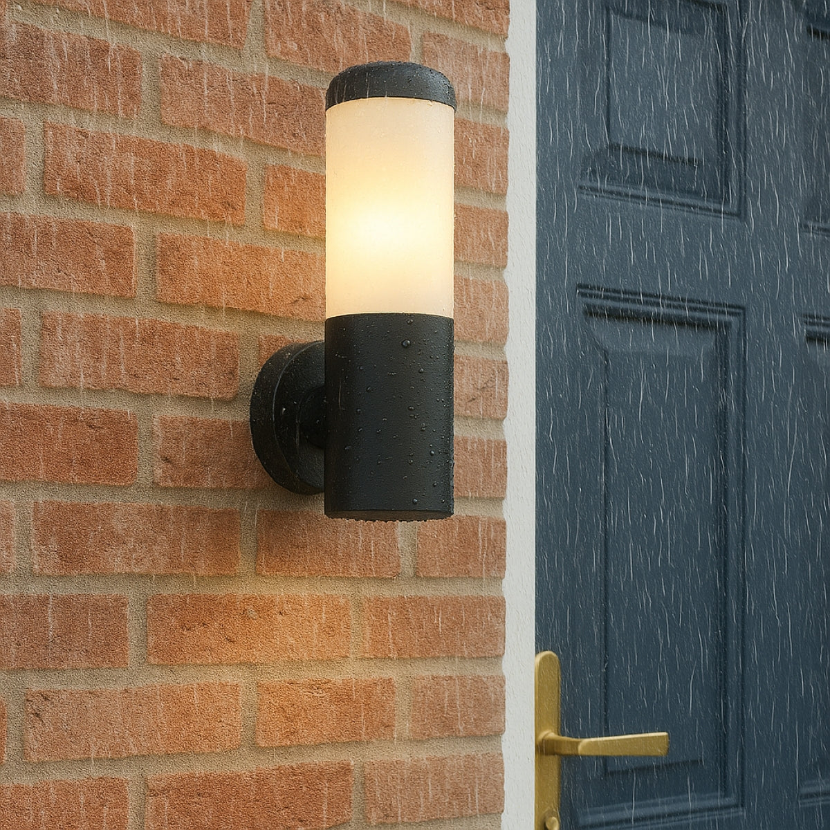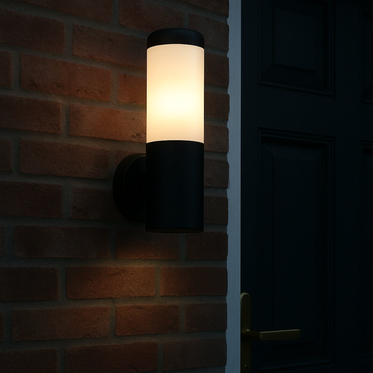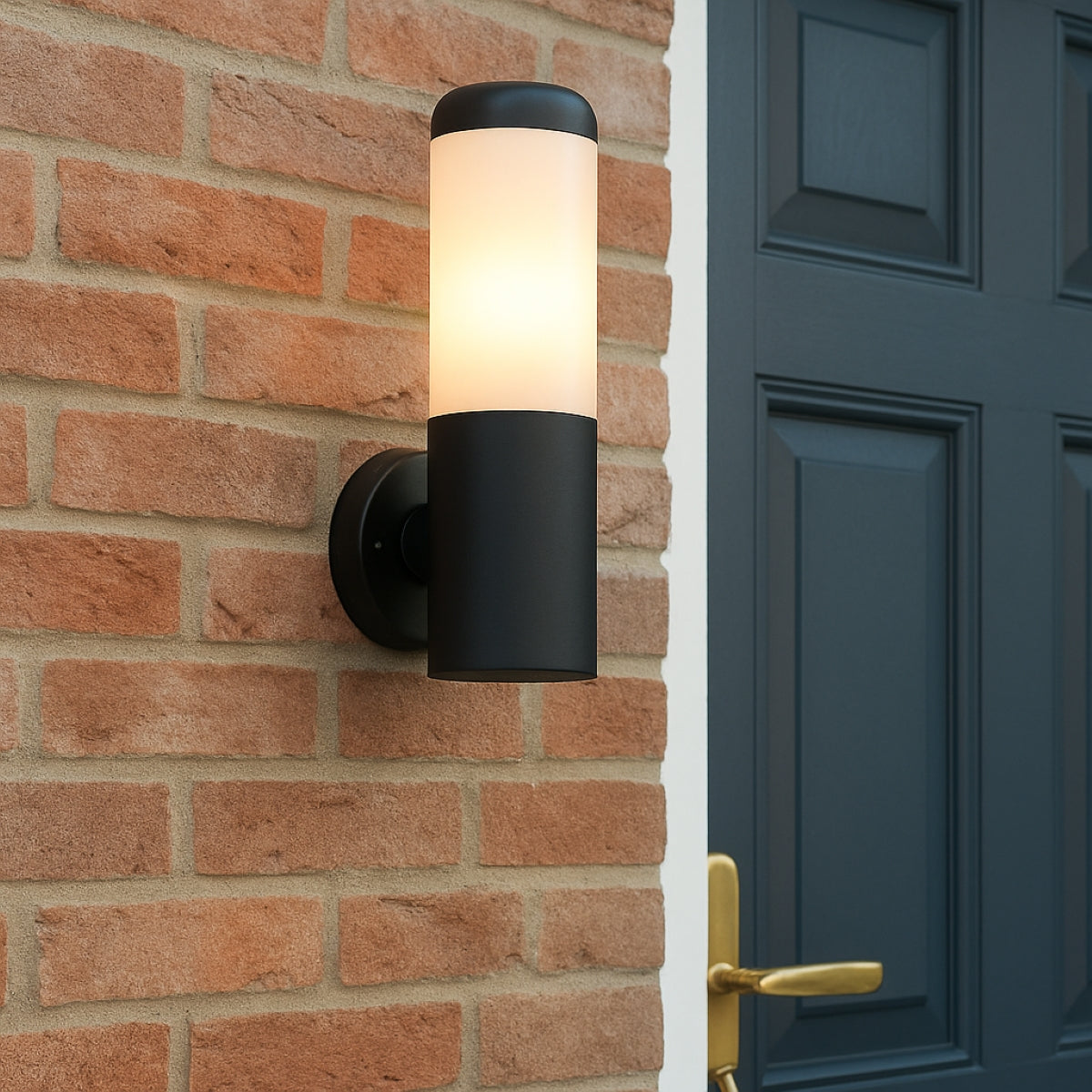 Our Humera black wall mounted round cylinder outdoor light would look perfect in a modern or more traditional home design. Outside wall lights can provide atmospheric light in your garden, at the front door or on the terrace as well as a great security solution. It is designed for durability and longevity with its robust material producing a fully weatherproof and water resistant light fitting.