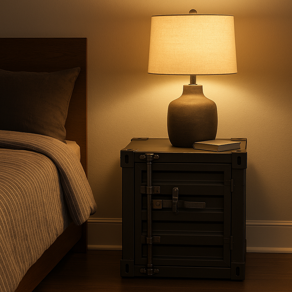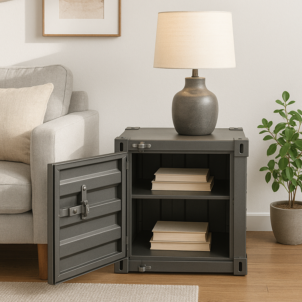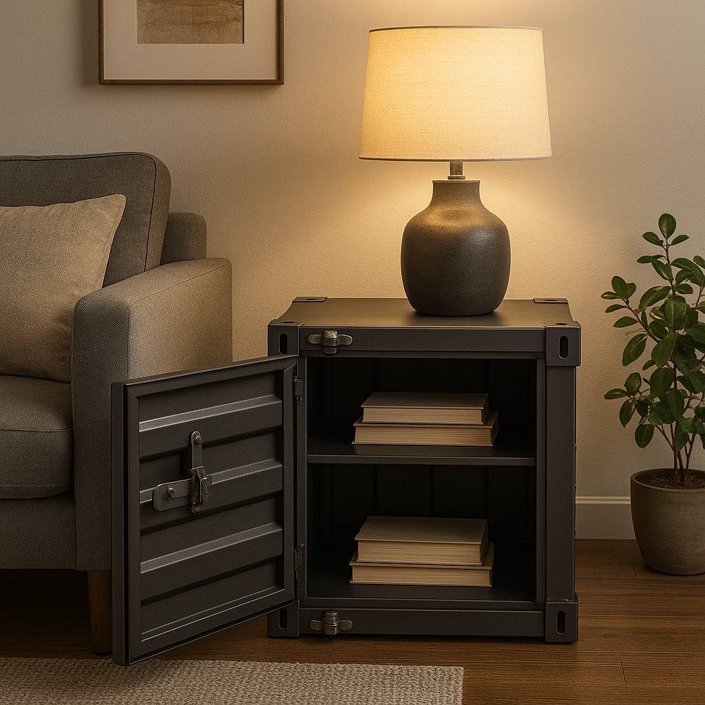 Retro Industrial Style Mini Shipping Container Side Table With Lockable Handle