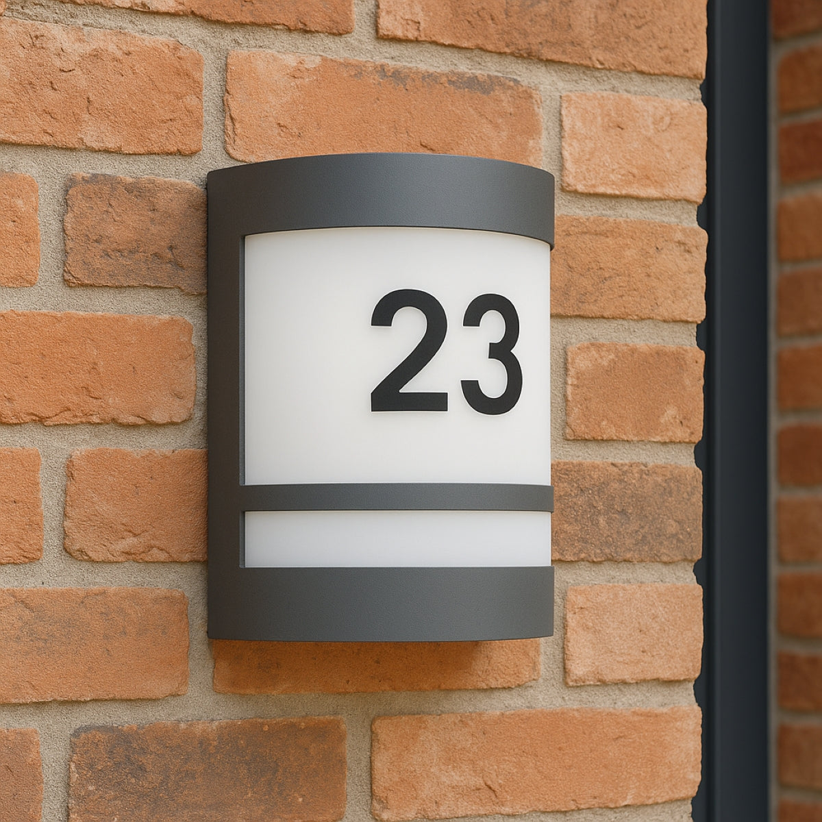 CONSTRUCTION: Elegant and modern design, with a steel body and opal polycarbonate diffuser - with numbers included so can be turned into a lighted door number