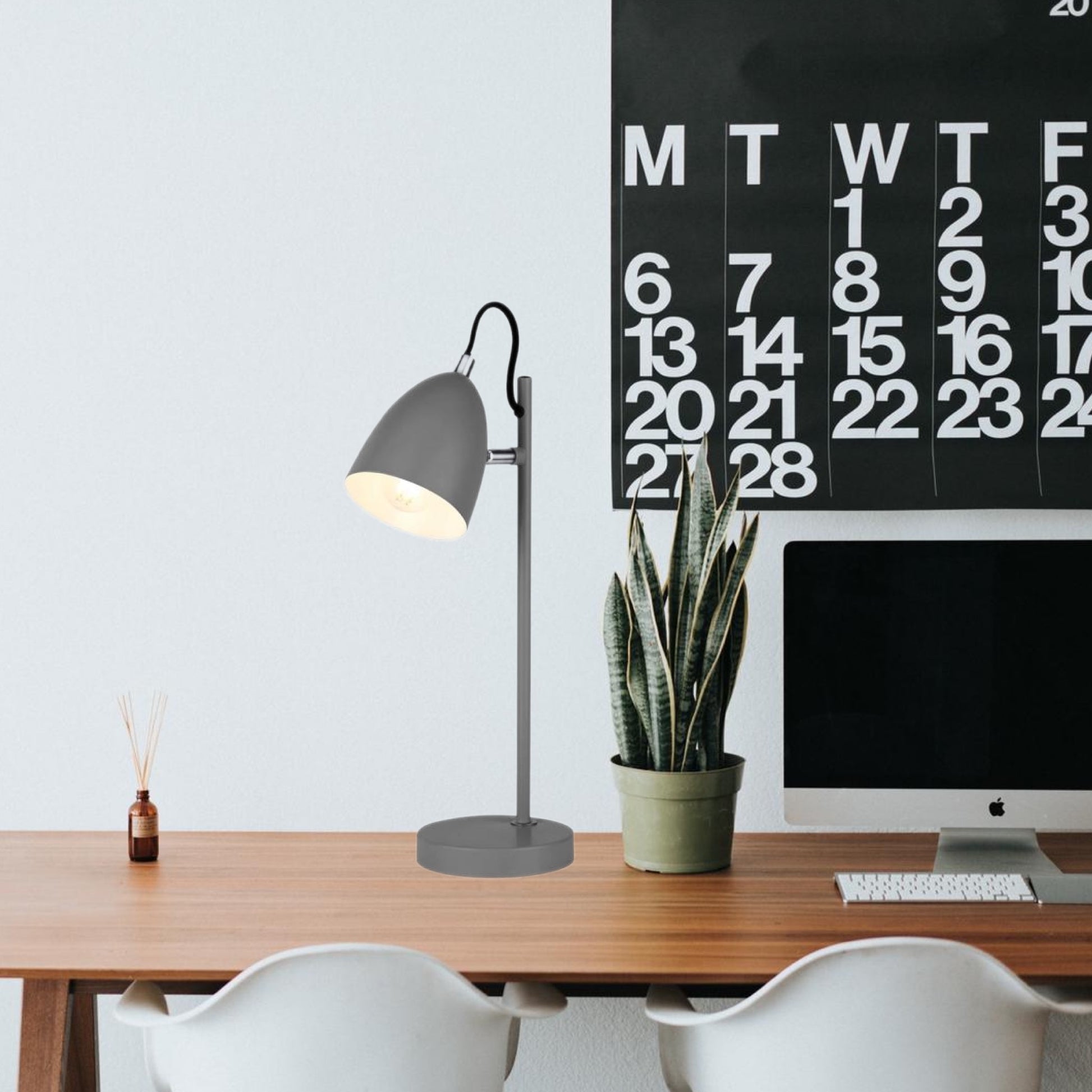With its grey matte painted finish, the Kobie desk lamp is perfect for bringing a modern touch to your home. The shade can be angled to the desired light position. Stylish and sleek in its design would look great in a study or positioned on a desk.