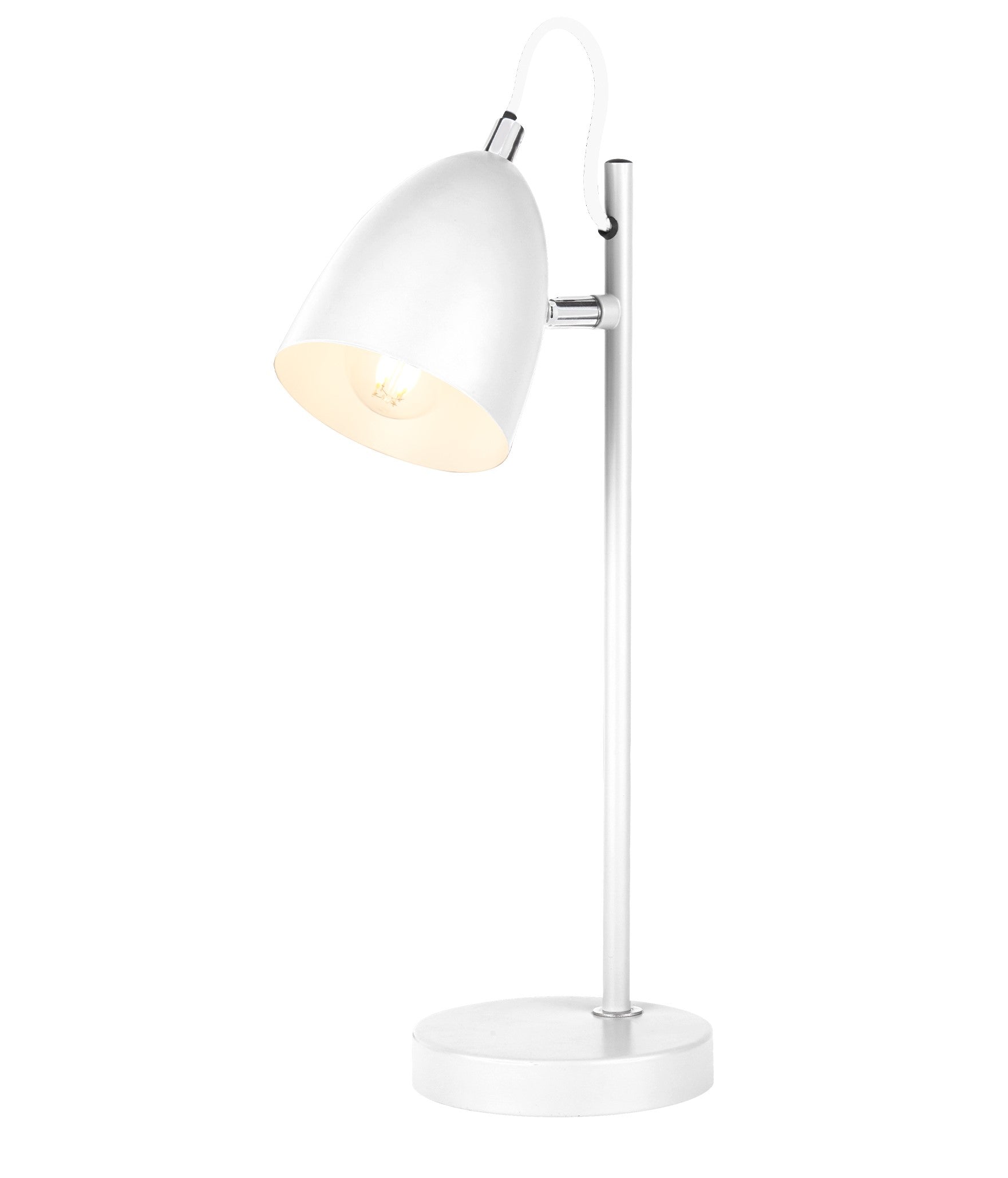 With its white matte painted finish, the Kobie desk lamp is perfect for bringing a modern touch to your home. The shade can be angled to the desired light position. Stylish and sleek in its design would look great in a study or positioned on a desk.