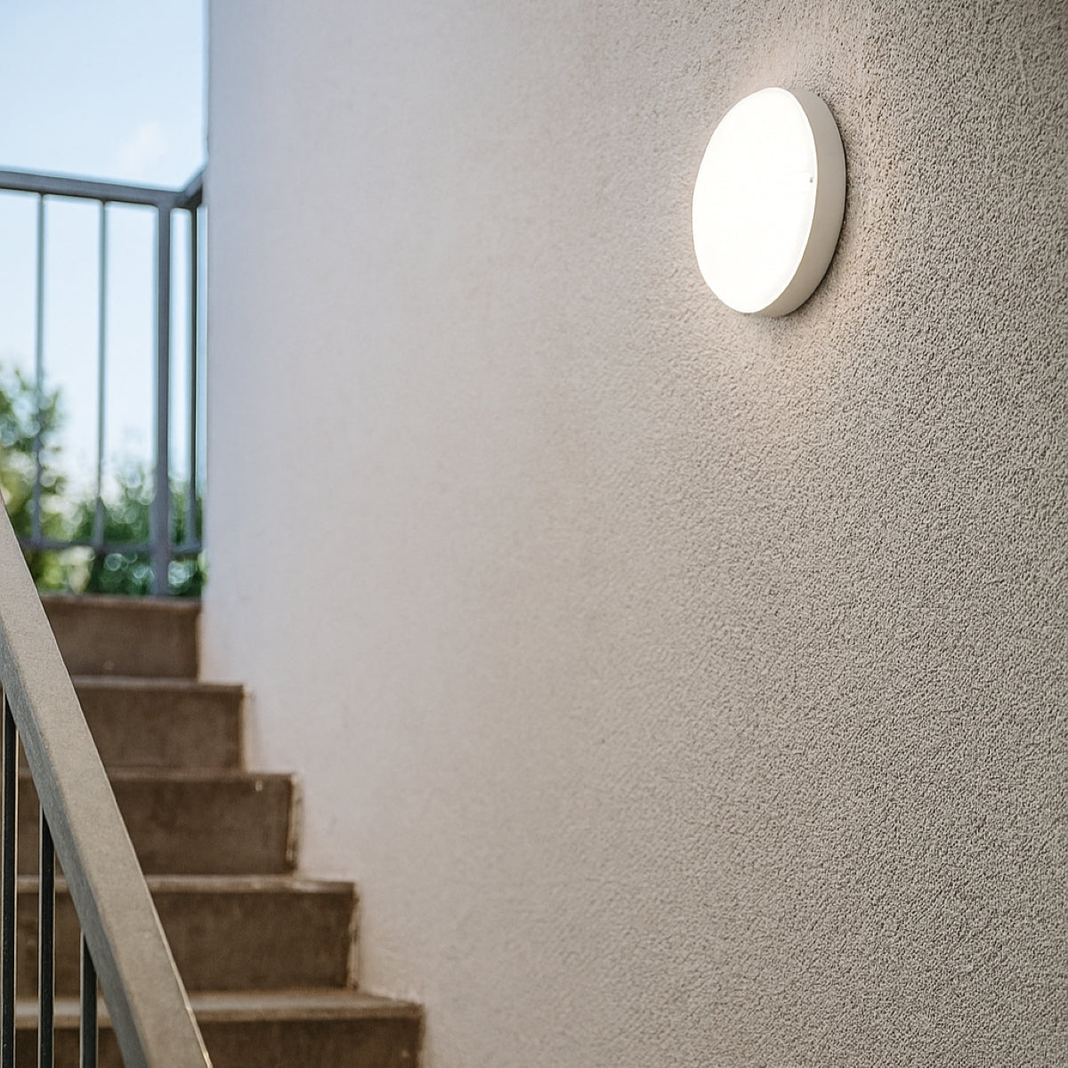 Our Leah white opal LED bulkhead can be wall mounted to provide the perfect lighting solution for corridors, hallways, walkways, stairwells, car parks, porches light and basements. Complete with highly efficient natural white built-in LEDs.