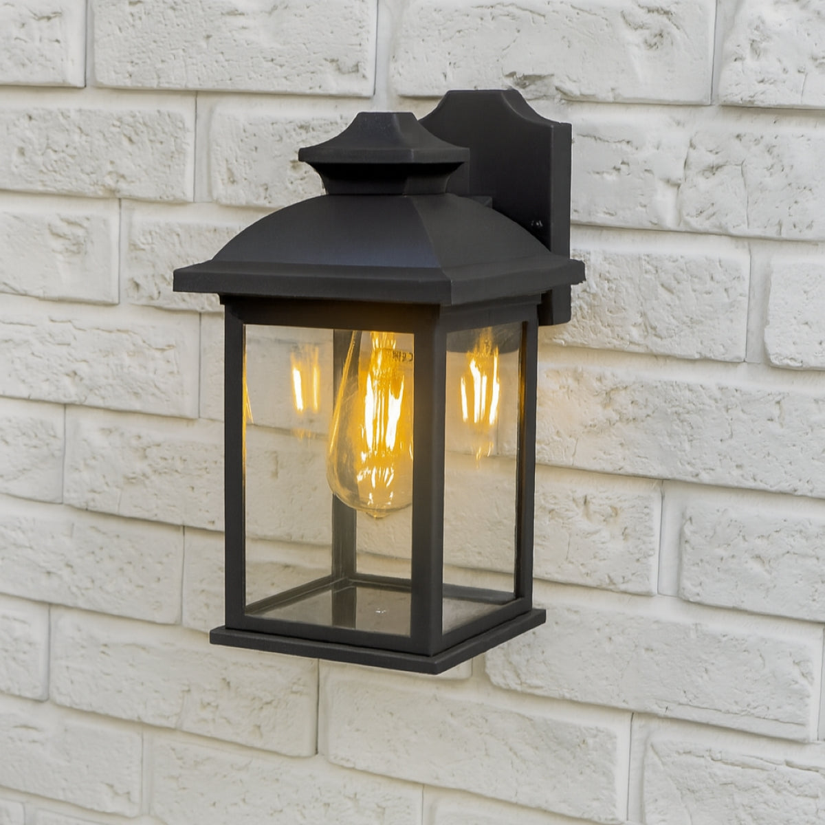CGC LILLIAN Black Rectangle Mounted Outdoor Wall Lantern Light