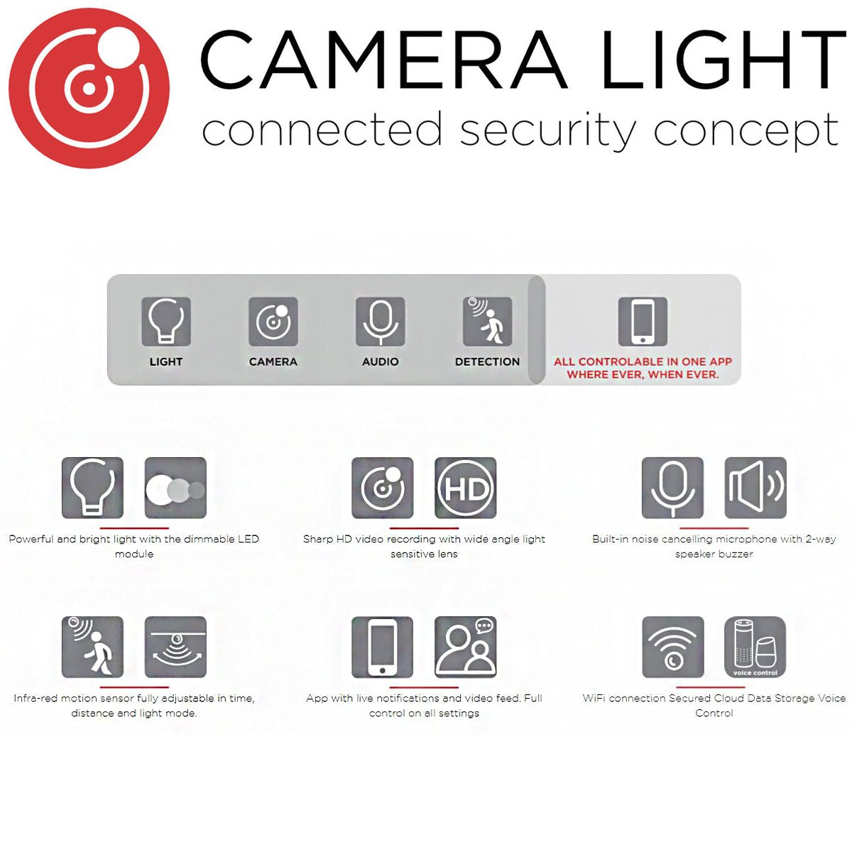 APPLICATIONS: Perfect camera wall light for doorways with light, audio and video all in one app