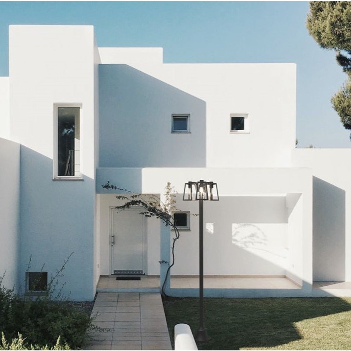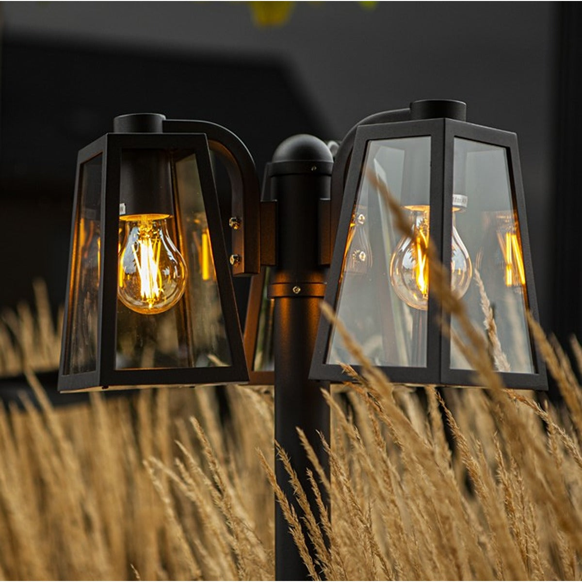 CONSTRUCTION: Weatherproof lamp post the black frame is made of aluminium and the light sources are protected by a transparent glass cover.