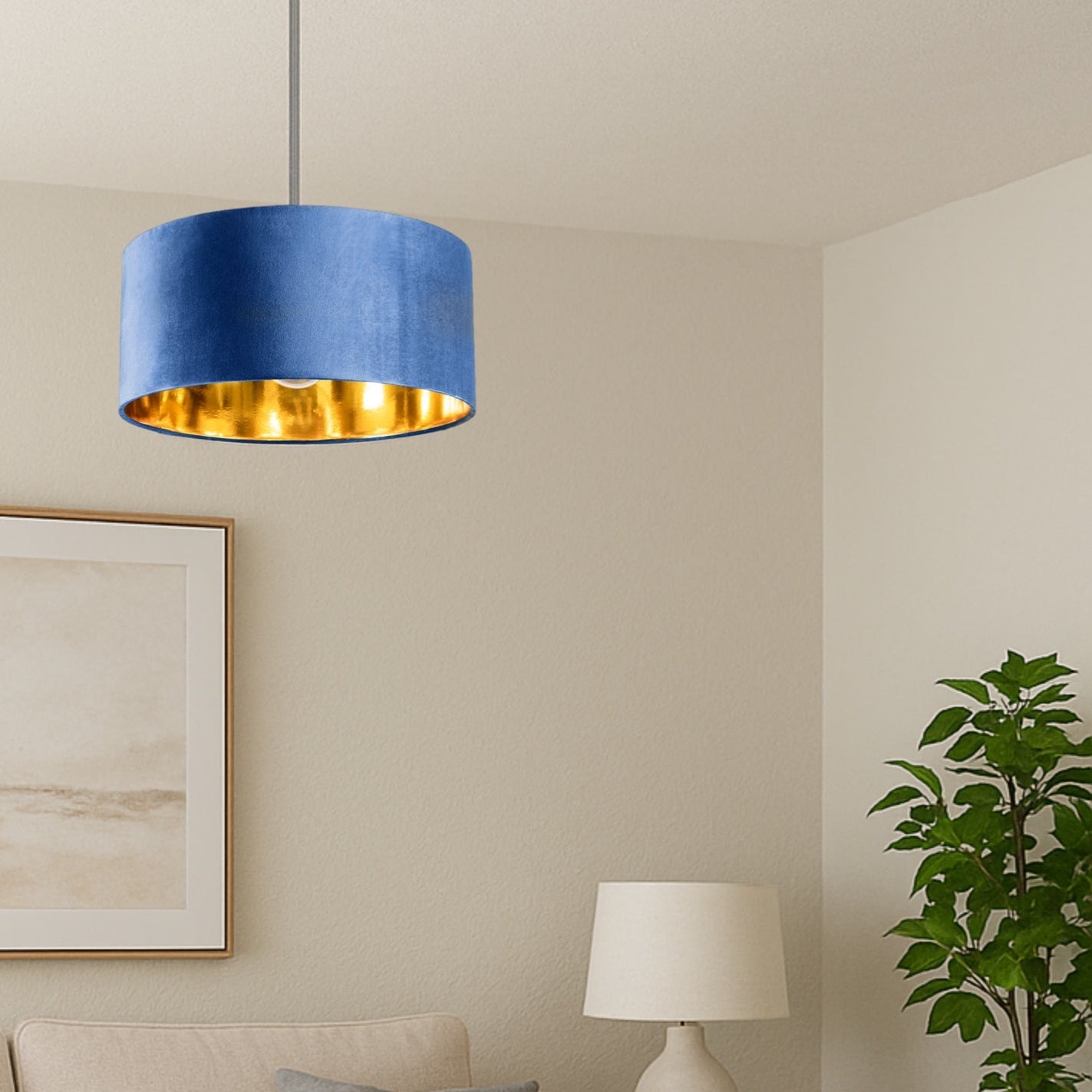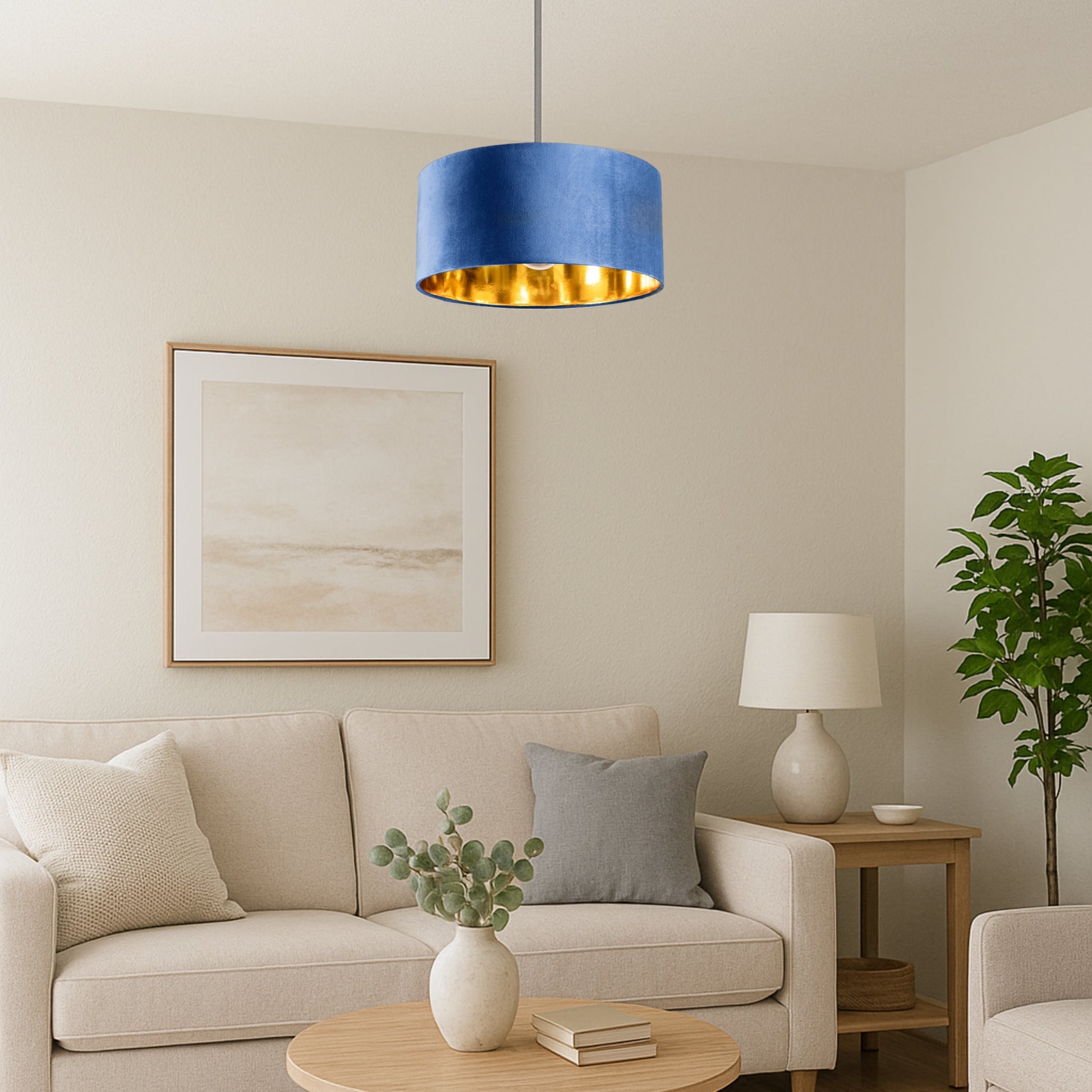 Our stunning oversized navy Milano lamp shade offers a timeless update to any room. The outer is made from high-quality navy blue velvet and the lining is reflective gold for a stylish finish. It’s easy to install and will instantly transforms your ceiling fitting, table or floor lamp. Simply attach to an existing light fitting or lamp base for an instant glow up.