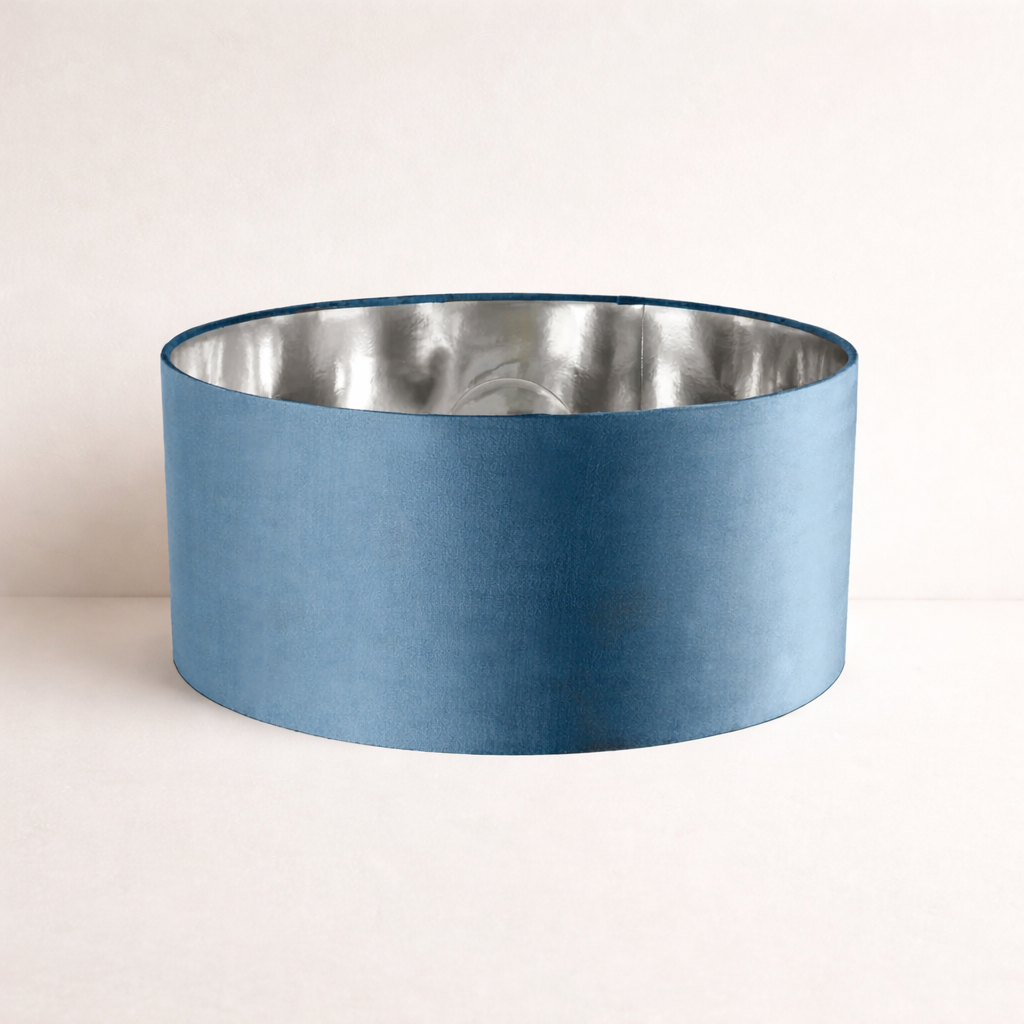 Our stunning oversized Teal blue/green Milano Lamp shade offers a timeless update to any room. The outer is made from high-quality velvet and the lining is reflective silver for a stylish finish. It’s easy to install and will instantly transforms your ceiling fitting, table or floor lamp.