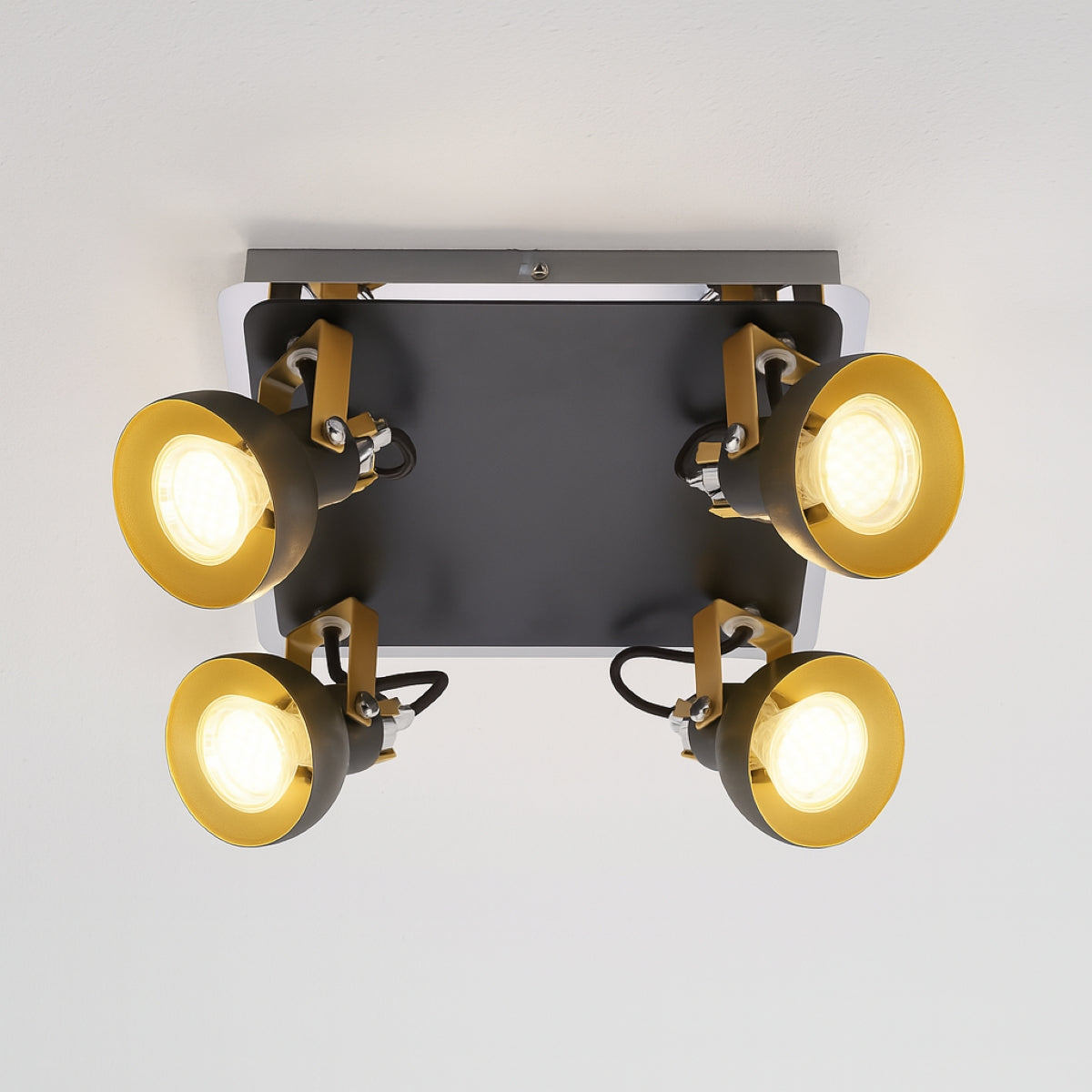 CGC SAFF 4 Head Black Adjustable Wall Ceiling Light With Gold & Chrome Detail