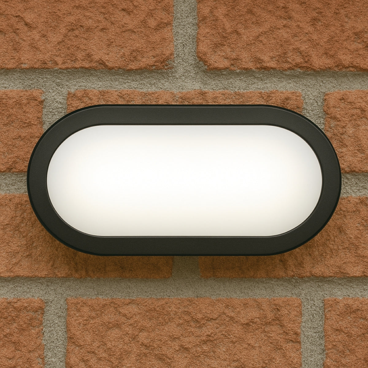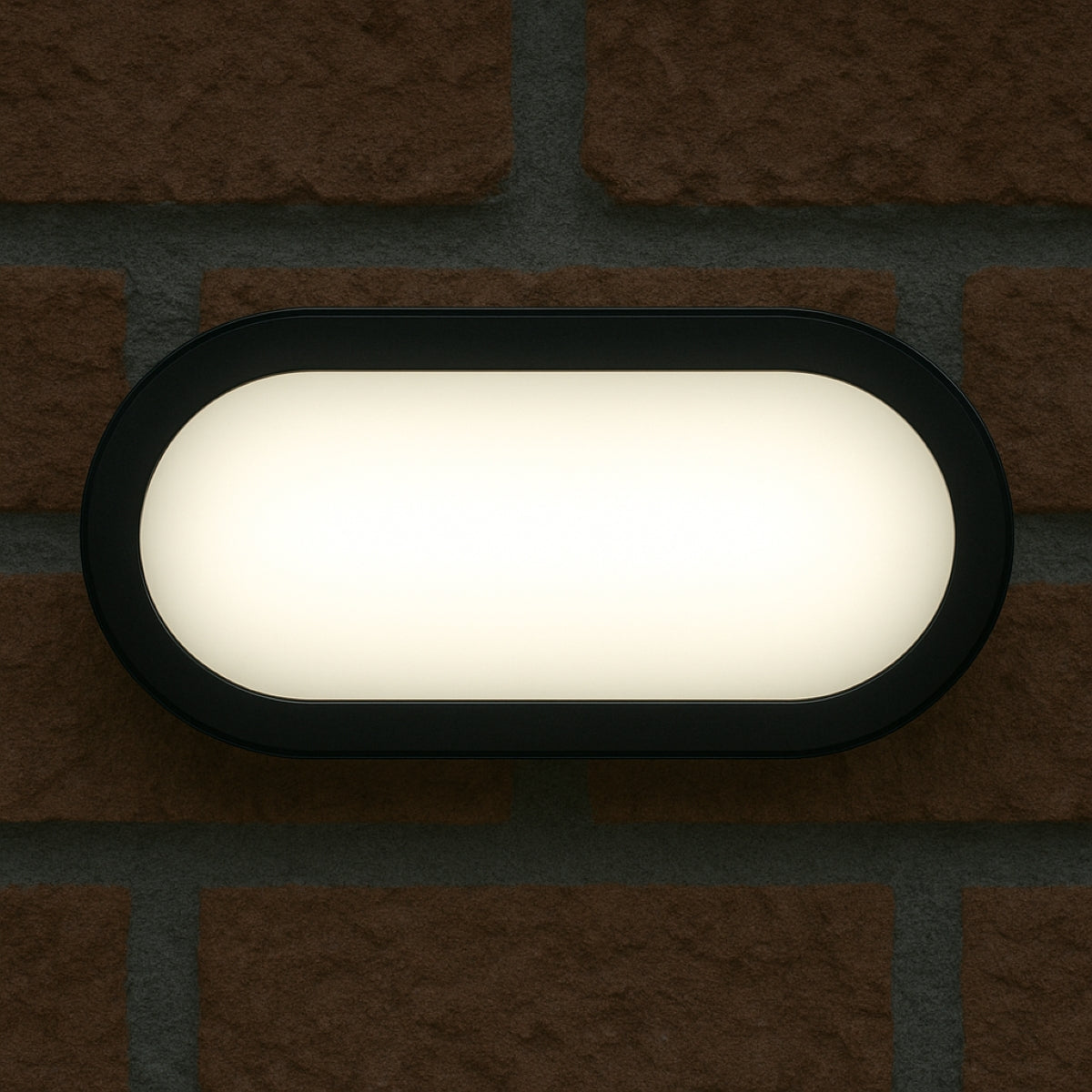 Our Sonny black oval LED bulkhead can be wall mounted to provide the perfect lighting solution for corridors, hallways, walkways, stairwells, car parks, porches light and basements. Complete with highly efficient natural white built-in LEDs.