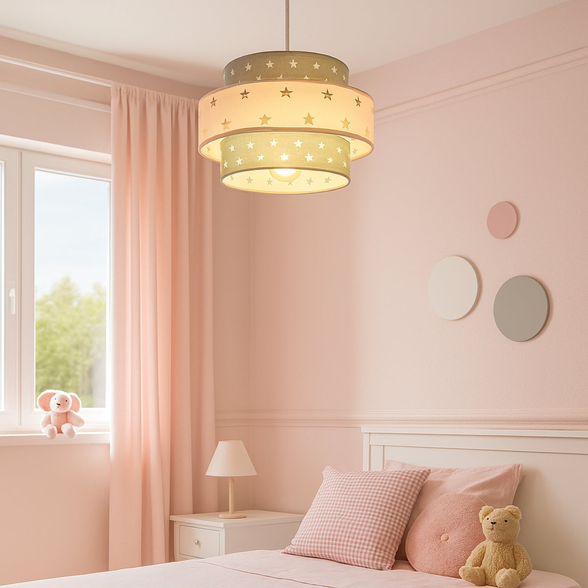 CGC STARLIGHT Grey & Pink Star Two Tier Easy Fit Lamp Shade