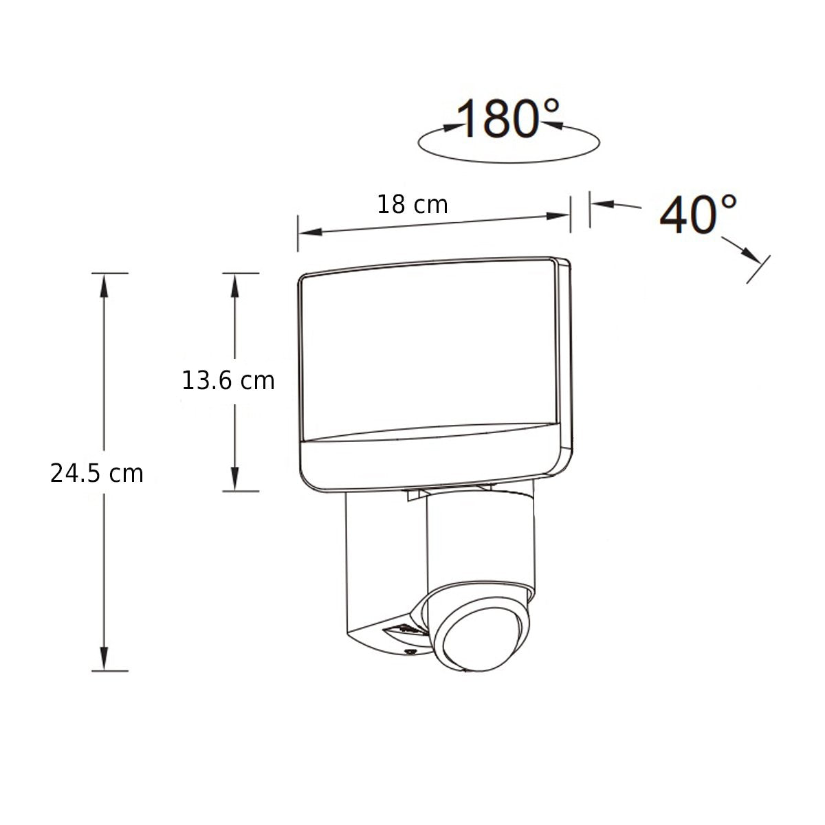 TECHNICAL: IP44 Rated for outdoor use, 3.7 volt lithium ion rechargeable battery, class 3, 5 metre cable, motion sensor can detect up to 18 metres & in a 180 degree angle