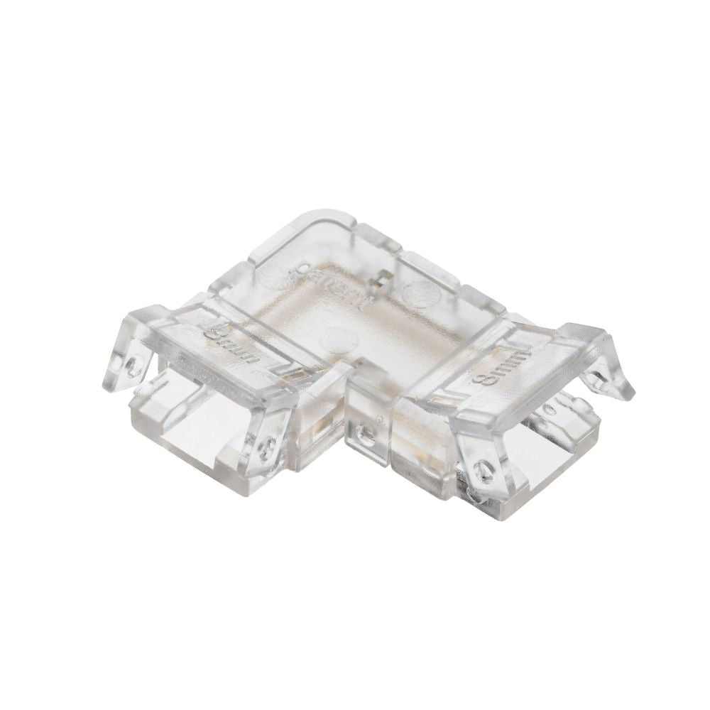 This transparent connector is an ideal solution that allows you to connect two sections of LED strips in the corners of furniture and other installations.