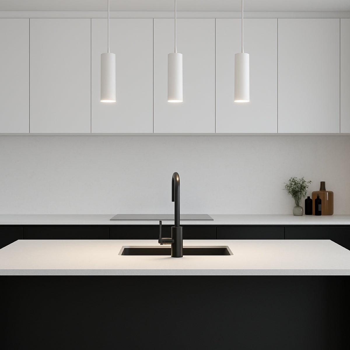 CONSTRUCTION: Elegant and modern design, three aluminium cylinder pendant with powder finish and with no diffuser pendant light. Height can be adjusted at the time of installation.