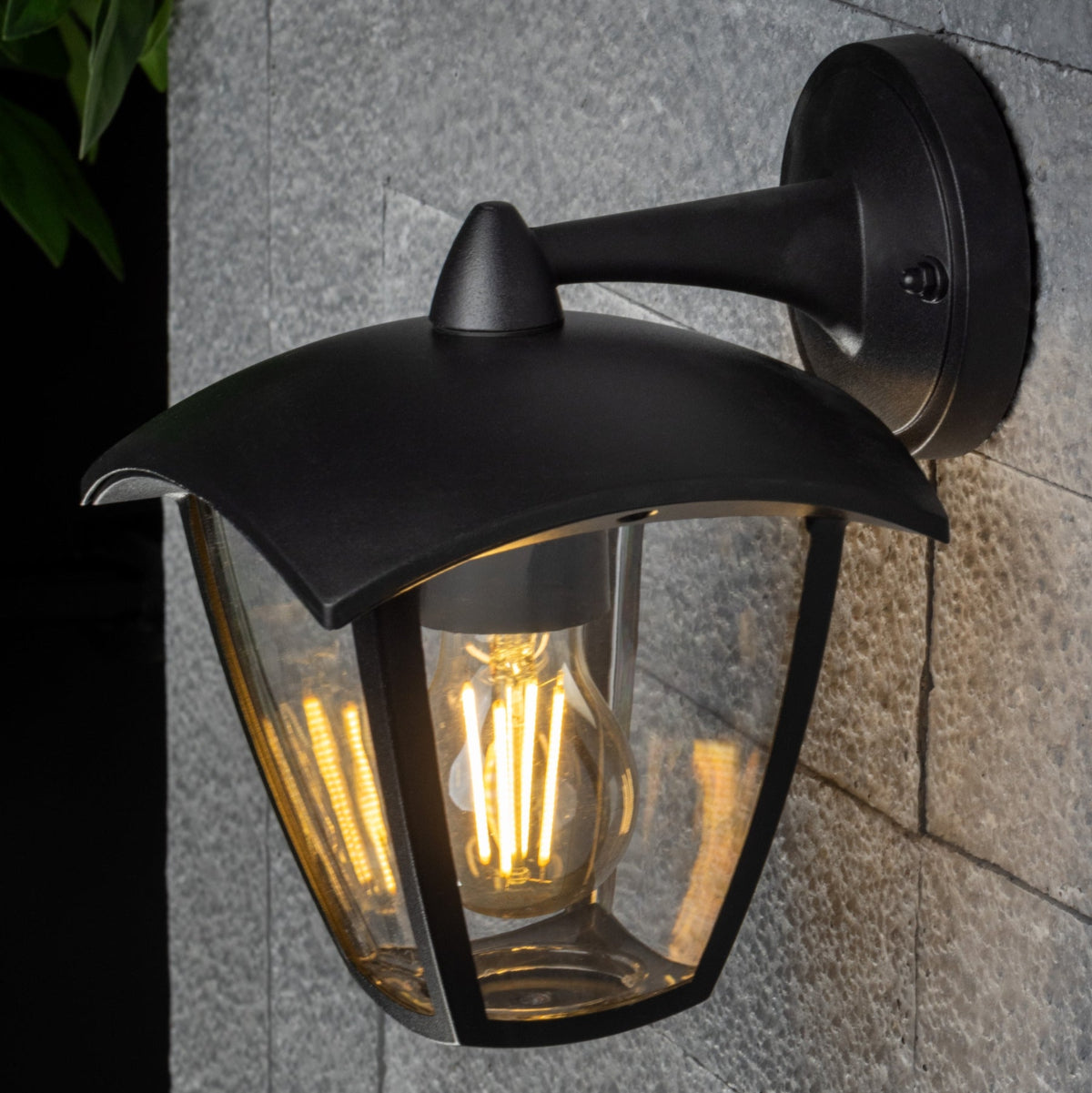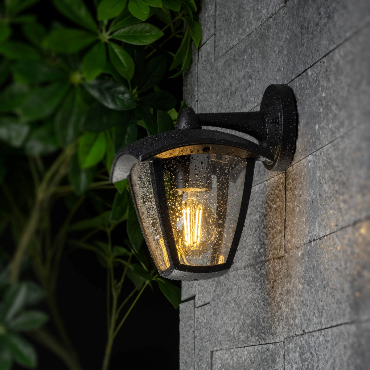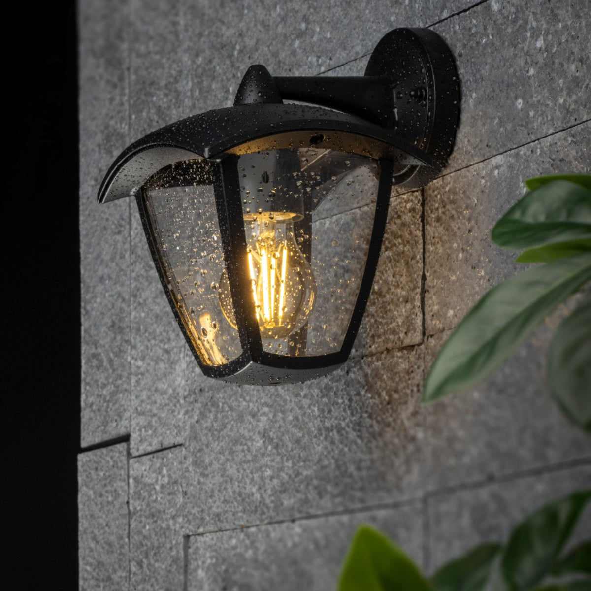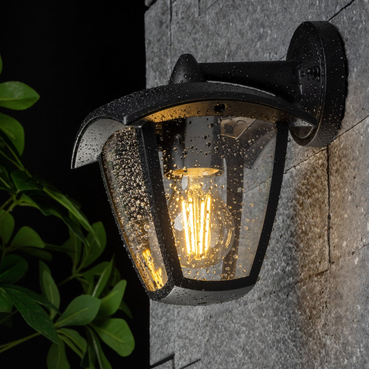 Create a warm welcome with our Violet black lantern wall light. With a completely weatherproof glass and matte black aluminium frame, this wall light is suitable for permanent installation and is perfect for entrances and dark outdoor spaces.