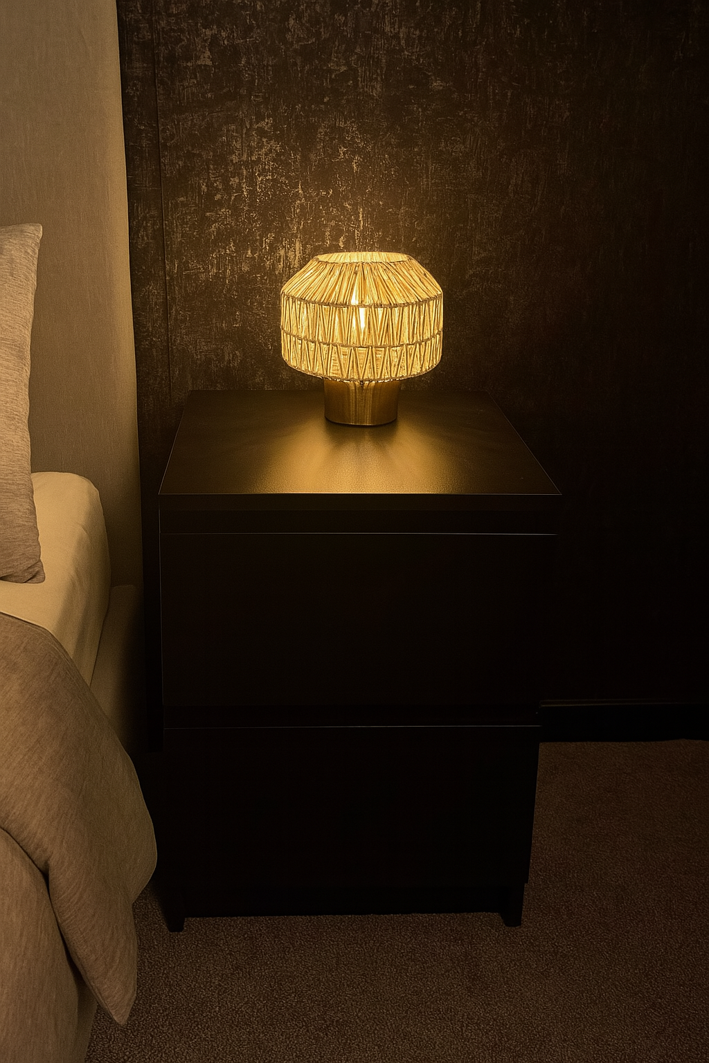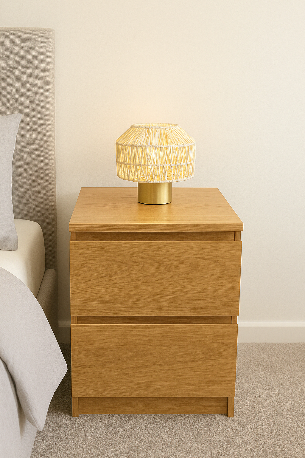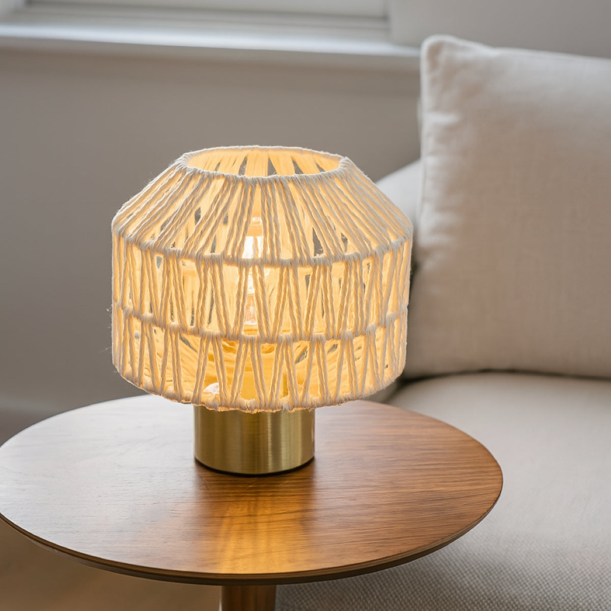 Our Woven table lamp is a beautifully geometric woven lamp and will be sure to add a natural and scandic vibe to any room within your home. Complimented with a golden base this lamp will certainly enhance any décor.
